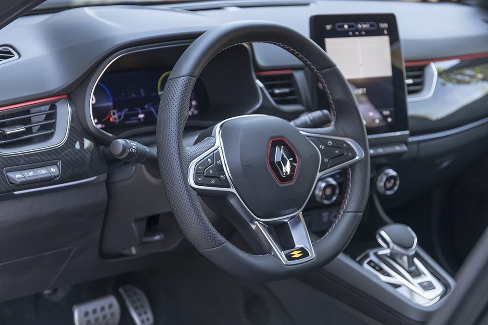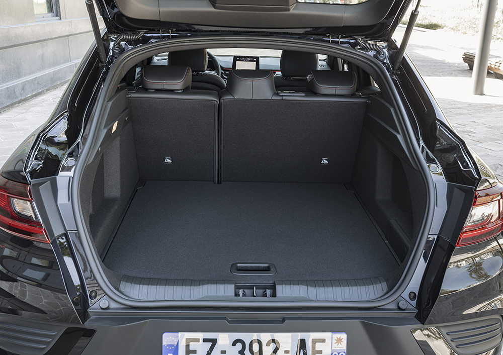Portbagajul are multe atuuri: o formă regulată, o podea amovibilă și un spațiu bun. Nu-l avantajează marginea înaltă de încărcare (79 cm) și lipsa spațiilor de depozitare. Dacă mergi pe mâna versiunii TCe, o să primești un spațiu total de 513 litri. E-Tech mai confiscă 33 de litri, oferind 480.